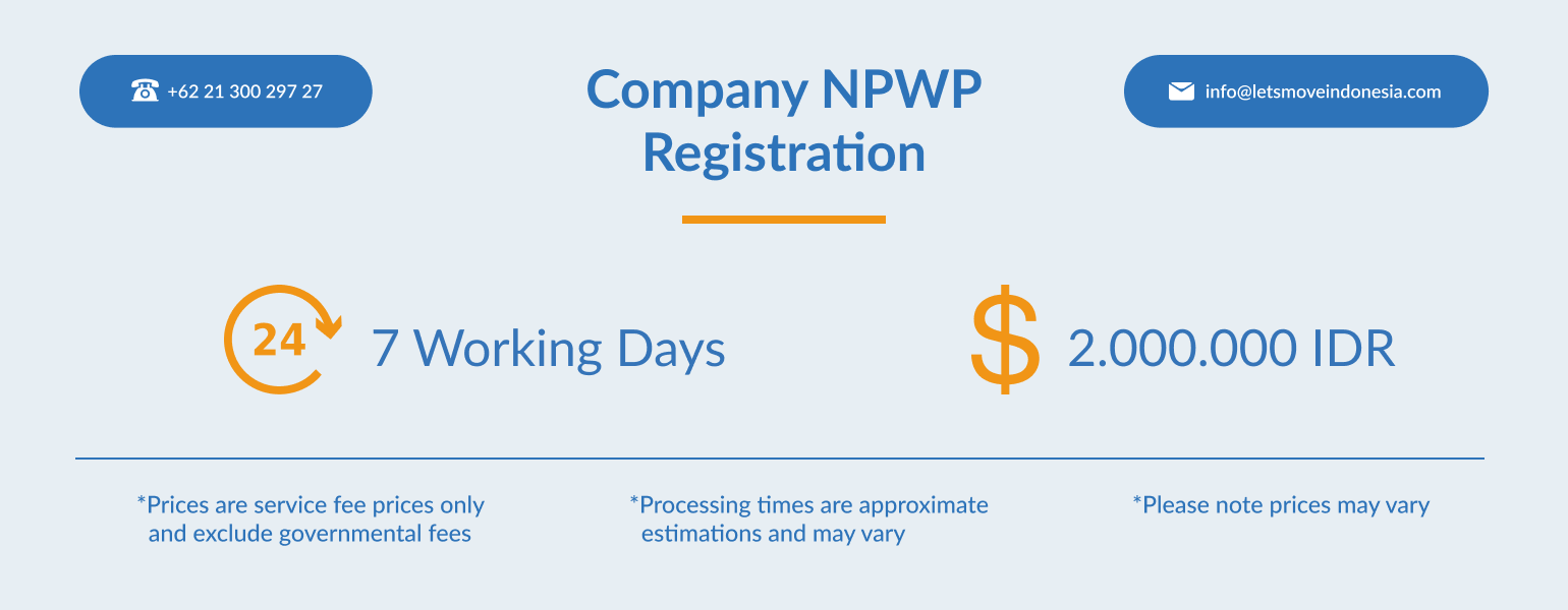 If you want to run a business in Indonesia, you must first obtain a company NPWP to make sure you are following the right tax requirements. LetsMoveIndonesia assists and makes sure your company is registered and eligible to conduct all tax matters for your business.