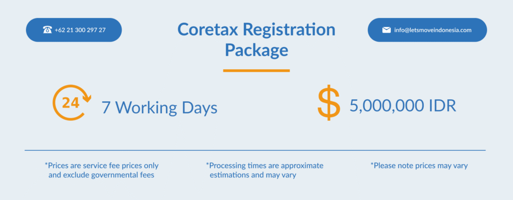 As a reliable partner of Business Registration and Compliance in Indonesia, Lets Move Indonesia offers you tailored Coretax consultation and easy solutions to your transition to the Coretax administration system in Indonesia.