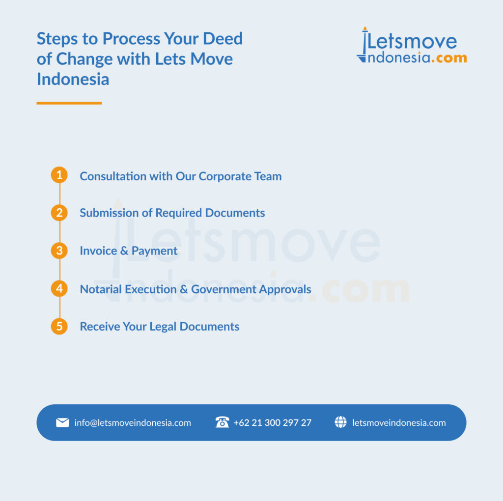 Lets Move Indonesia provides complete, seamless, and compliant corporate amendment services, including: