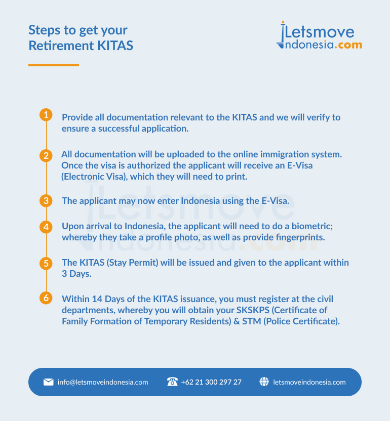 The new regulation stipulates that expatriates with age above 55 years old who are able to provide a statement of their minimum monthly pension fund of USD 3,000 can apply for the five-year scheme of Retirement KITAS.