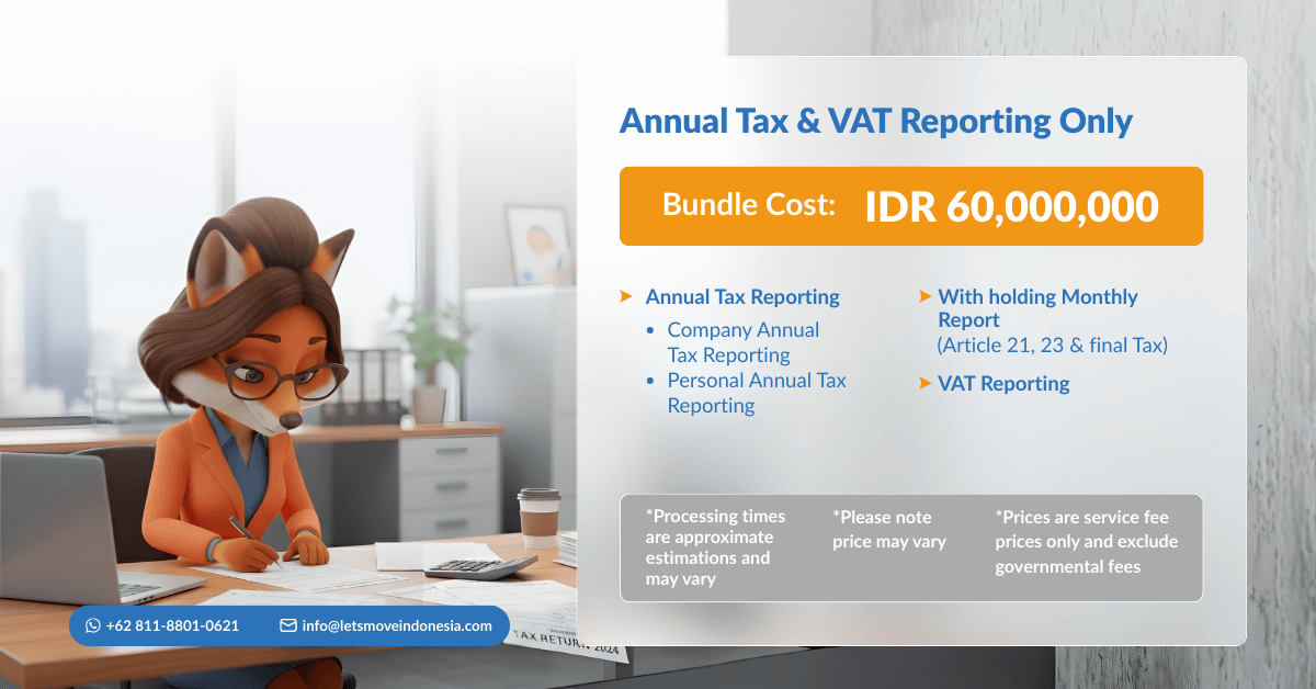 Lets Move Indonesia is proud to introduce our exclusive Tax & Accountancy Packages, designed to save your business time, stress and money.